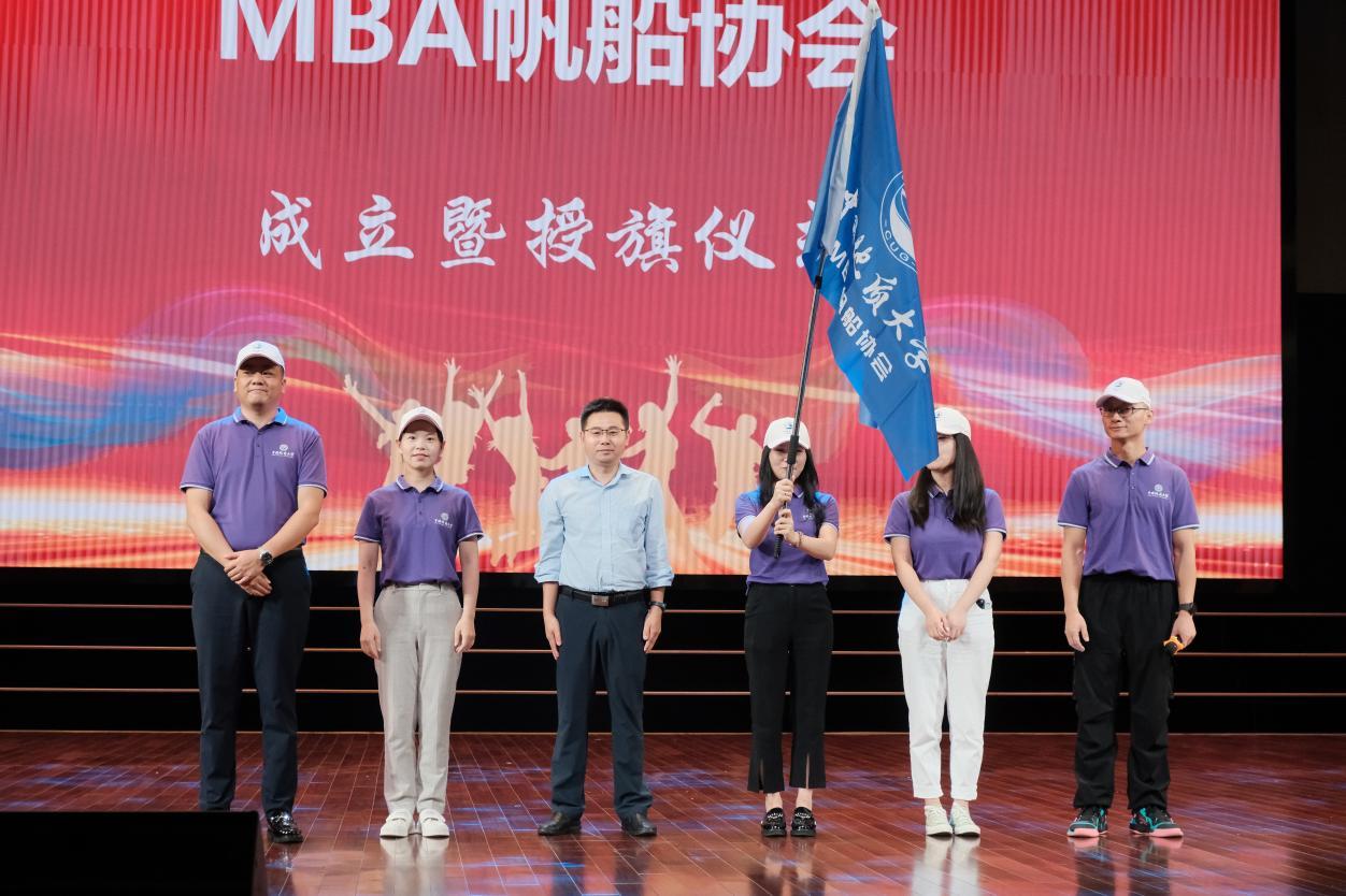 於世为经理向MBA帆船协会首届会长、21级MBA周佩佳授旗