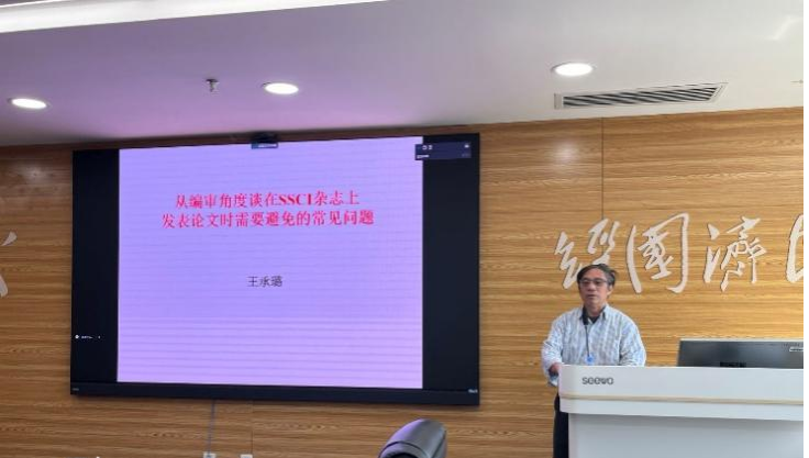 (通讯员 周敏)为了进一步建设高水平研究型公司,4月9日下午,应副经理郭锐教授邀请,美国纽黑文大学商公司终身教授王承璐在公司422会议室做题为“从编审角度谈在SSCI杂志上发表论文时需要避免的常见问题”的学术讲座。工商管理系主任谢雄标教授、侯俊东教授等线上线下共计50余人参与此次讲座。