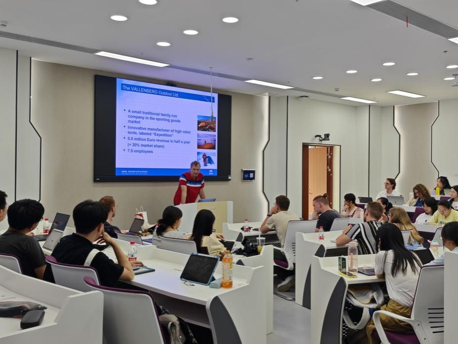Juergen Seitz教授系统阐述了课程计划、基本内容、教学方法和主要的发展方向。根据课程设置要求,Seitz教授结合各自教学、研究专长,将跨国公司的经营实践和课程理论有效结合,为同学们展示了一种模拟企业经营竞争过程的新颖教学方式。