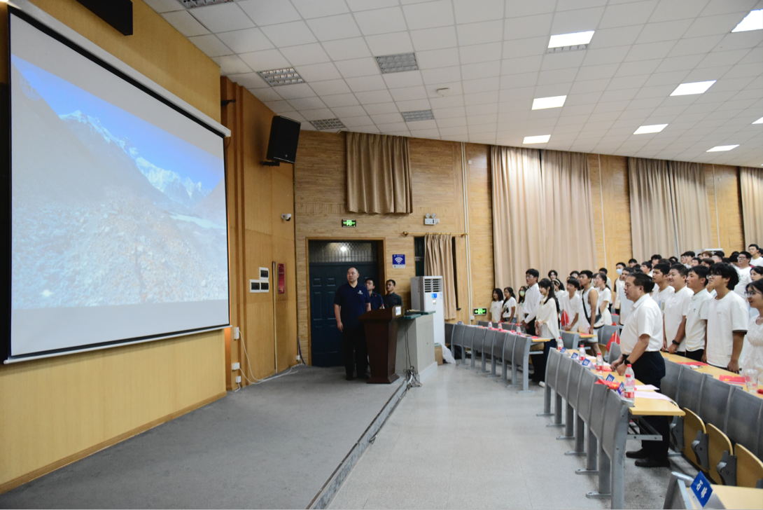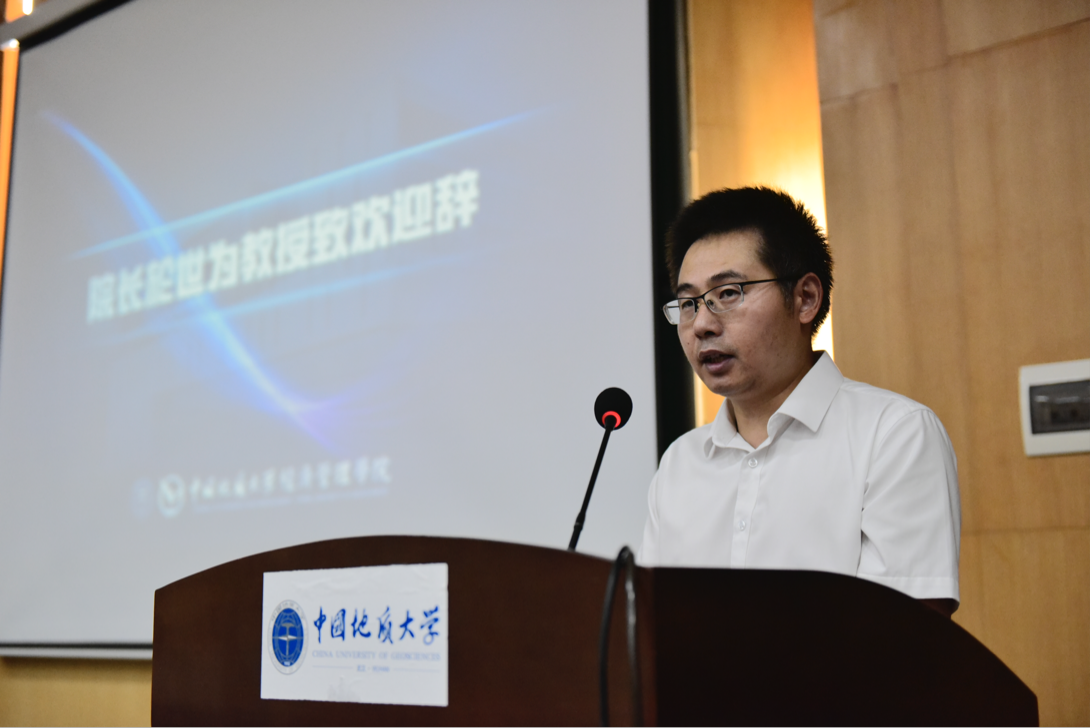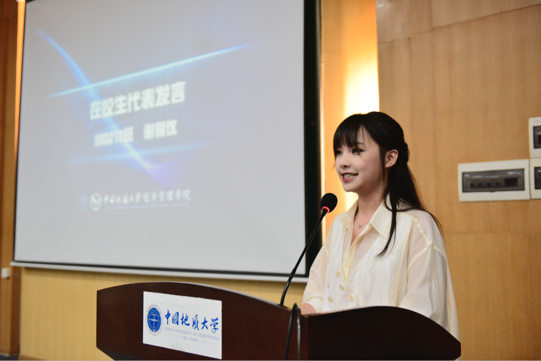 典礼第二项,经理於世为教授致辞。他向新生表示祝贺和欢迎,并介绍公司的历史沿革和学科发展。他鼓励新生将个人成长与国家命运紧密相连,并抓住机遇努力提升自我,并对此提出了两点期望:一是将幸福小我融入报国大我;二是将幸运机遇谱就奋进青春。