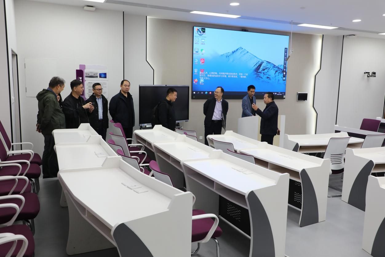 杨昌锐带领武汉纺织大学经济公司一行首先参观了金融实验室、云共享财务实验室、智慧教室、数字化档案室和活动室。