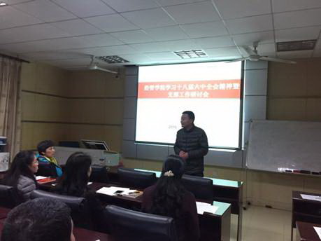 党课结束后,各支部围绕“两学一做”学习教育基层党建重点工作进行了研讨。各支部书记汇报了本支部一年来的支部建设工作的开展情况,并找出了支部工作的不足之处。党委委员对各支部的党建工作做了充分的肯定,并提出在支部工作中不仅要把传统的、好的做法发扬光大,还要努力创新本支部的特色工作,把特色工作融入到支部建设工作之中。隋书记还对 “两学一做”学习教育基层党建重点工作、洪山区关山街第十九选区区级人大代表换届选举工作、教学审核评估工作有关事宜都进行了进一步的工作部署。