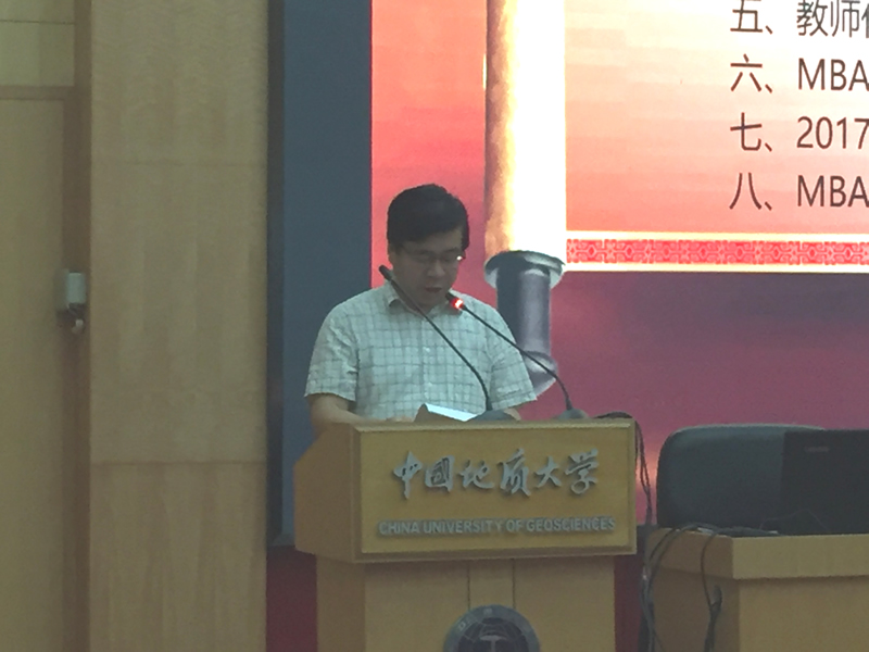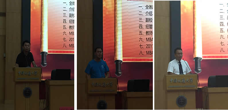 地大MBA优秀员工代表赵千里,结合自身求学经历和创业经验作交流发言。 2017级MBA新生陈建伟同学,代表全体新生做三点表态: 一是要做一名“三好员工”;二是敢闯敢想,但要脚踏实地;三是要传承好母校艰苦朴素的优良传统。 MBA联合会主席段捷就MBA联合会的相关情况作经验交流。