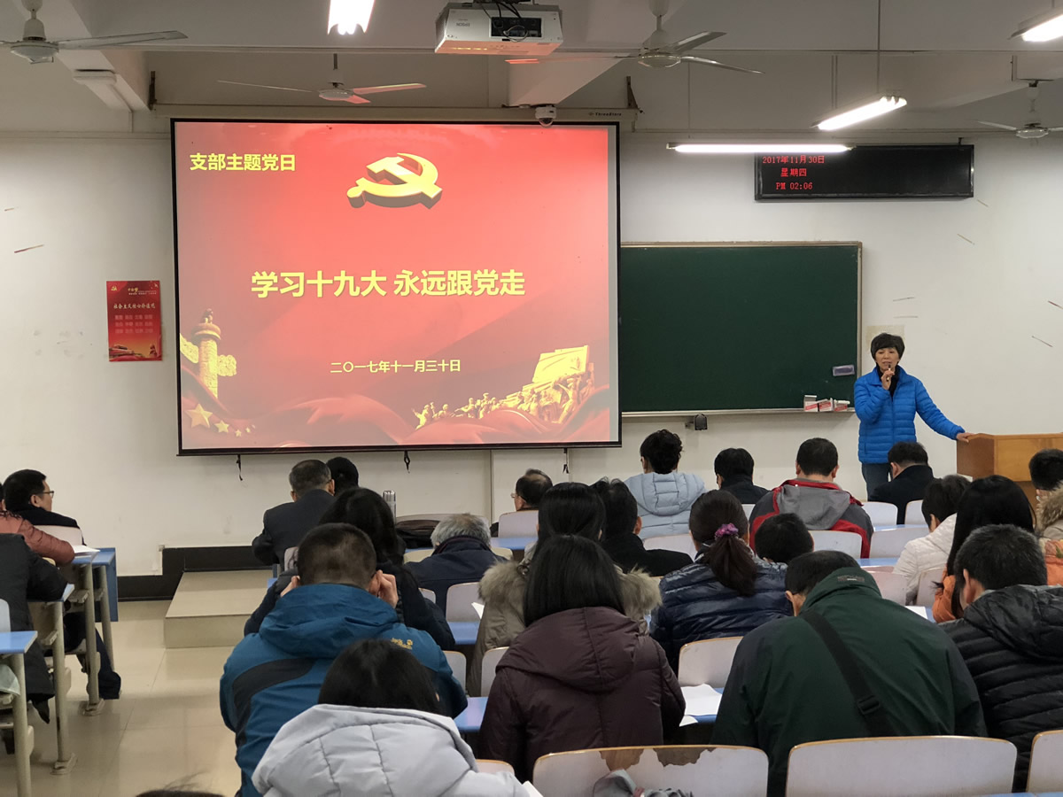 (通讯员 海鸣)11月30日下午,经管公司在综合楼206,开展了“学习十九大 永远跟党走”的支部主题党日活动,由公司党委书记隋红主持,教工全体党员和员工支部书记参加了活动。