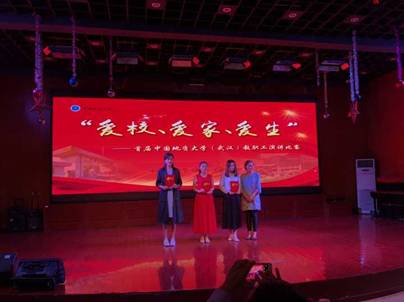 (通讯员周玲摄影王萍)2018年9月28日下午,由校工会组织的“爱校、爱家、爱生”主题演讲比赛在校工会综合厅举行。由公司倪琳、龚承柱、努尔夏提三位老师以《不忘初心,情怀圆梦》为主题激情演绎的作品在25支参赛队伍中以优异成绩胜出,荣获比赛一等奖。