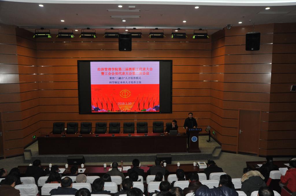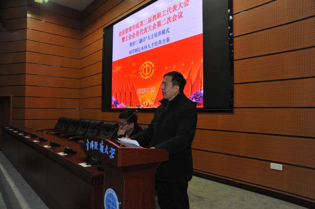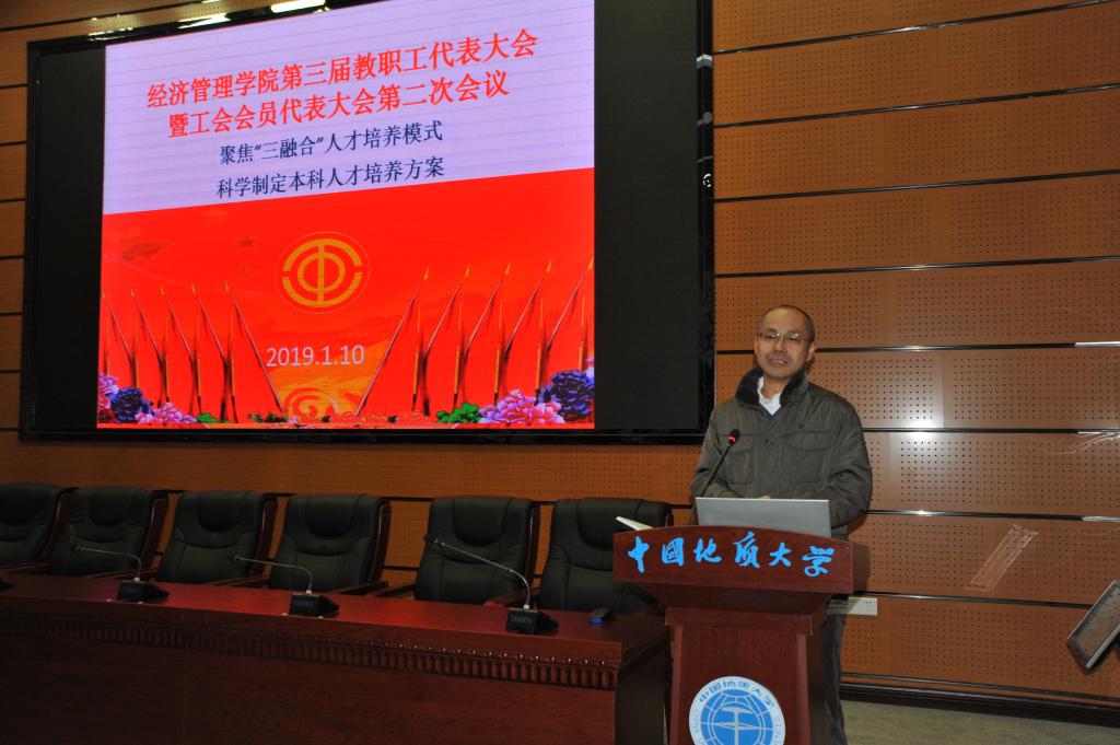 (通讯员周玲,摄影赵谦、王萍)2019年1月10日,bevictor伟德国际第三届教职工全体会议暨代表大会第二次会议在东区综合楼A0113报告厅如期召开。本次大会由包括公司教职工代表在内的全体教职工参加,以“聚焦‘三融合’人才培养模式,科学制定人才培养方案”为主题。 公司党委常委、副董事长刘勇胜同志、校工会常务副主席喻芒清同志出席会议。