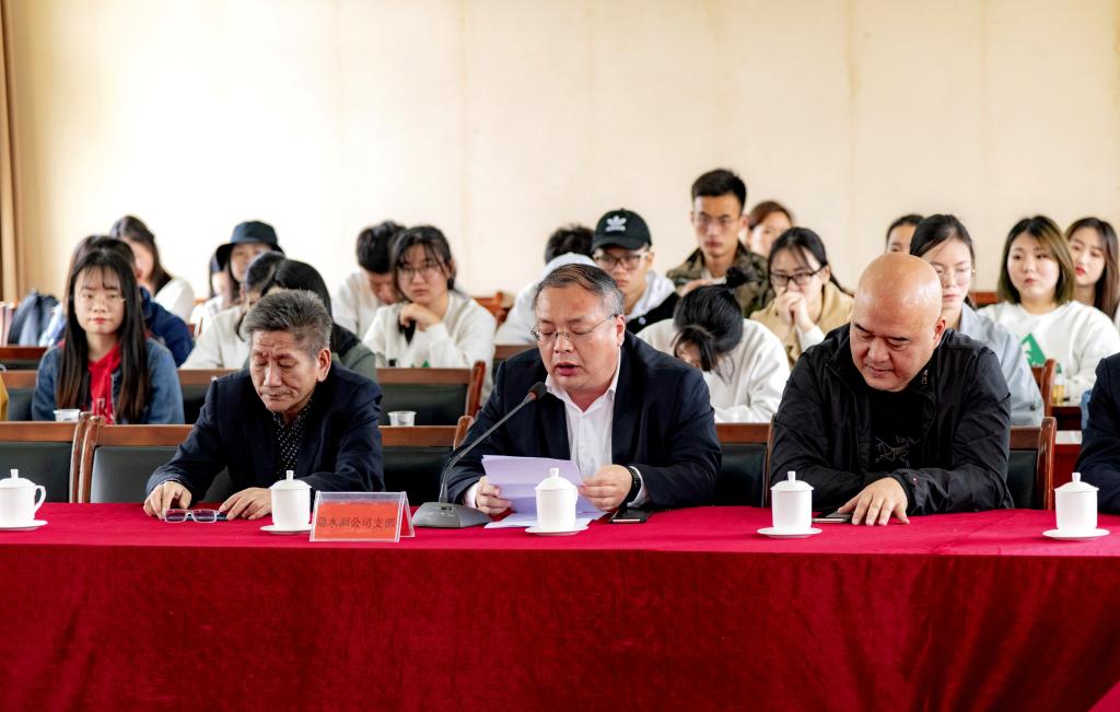 通山县扶贫办主任成军同志致欢迎辞,并介绍通山县旅游扶贫发展历程和实效。作为当事人之一,成军同志回顾了2003年4月18日—19日同鄢志武教授带领项目组及员工在隐水洞进行地质勘察时的遇险经历,以及期间谱写的“生死师生情”感人事迹。