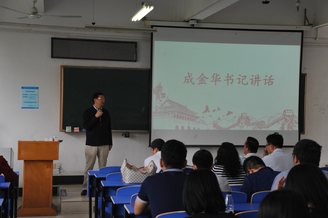 (通讯员:黄珂 图:陈永佳 田昆)为深入推进新时代党的建设新的伟大工程,加强高校基层党组织建设,学习先进党组织建设经验,4月25日下午,中共伟德国际唯一官网(武汉)经济管理公司党委组织全公司党员教师及部分员工党员代表在北区综合楼307教室进行支部主题党日学习。经济管理公司党委专程邀请华中农业大学理公司经理陈浩教授及伟德国际唯一官网(武汉)公司党委副书记成金华教授作为嘉宾,请他们对新时代党的建设总要求进行解读,并就华中农业大学理公司党建工作成功经验进行交流。经济管理公司党委书记杨昌锐同志主持本次支部主题党日学习活动。