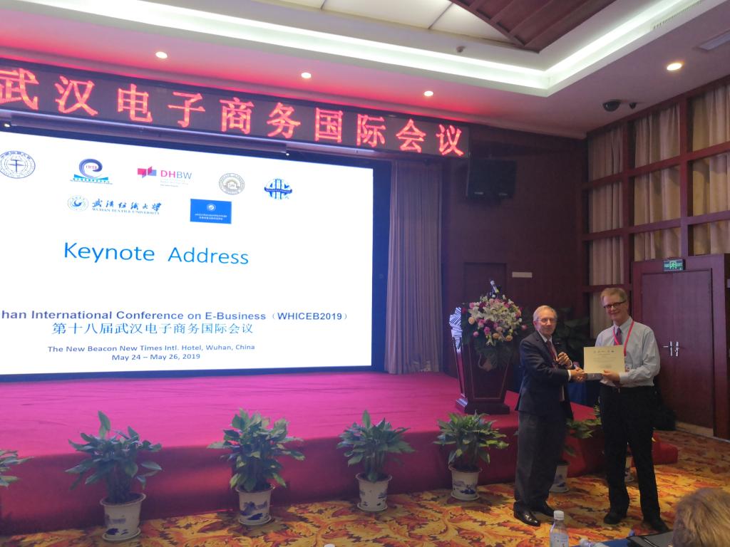 (通讯员:朱镇)2019年5月24日至5月26日,由公司bevictor伟德国际、电子商务国际合作中心,美国阿尔弗雷德大学商公司和德国巴登-符腾堡州联合大学共同主办,武汉纺织大学管理公司参与承办的第十八届武汉电子商务国际会议在纽宾凯新时代国际酒店召开。会议主席赵晶教授主持了开幕式,公司党委副书记成金华教授,国际信息系统协会前主席Doug Vogel(前AIS主席),以及信息系统学会中国分会副主席、中国人民大学王刊良教授现场致欢迎词。来自国内外高校的190多名专家学者参加了会议,其中来自美国、澳大利亚、德国、加拿大和芬兰等8个国家和地区,15所大学的21位国外专家出席会议。