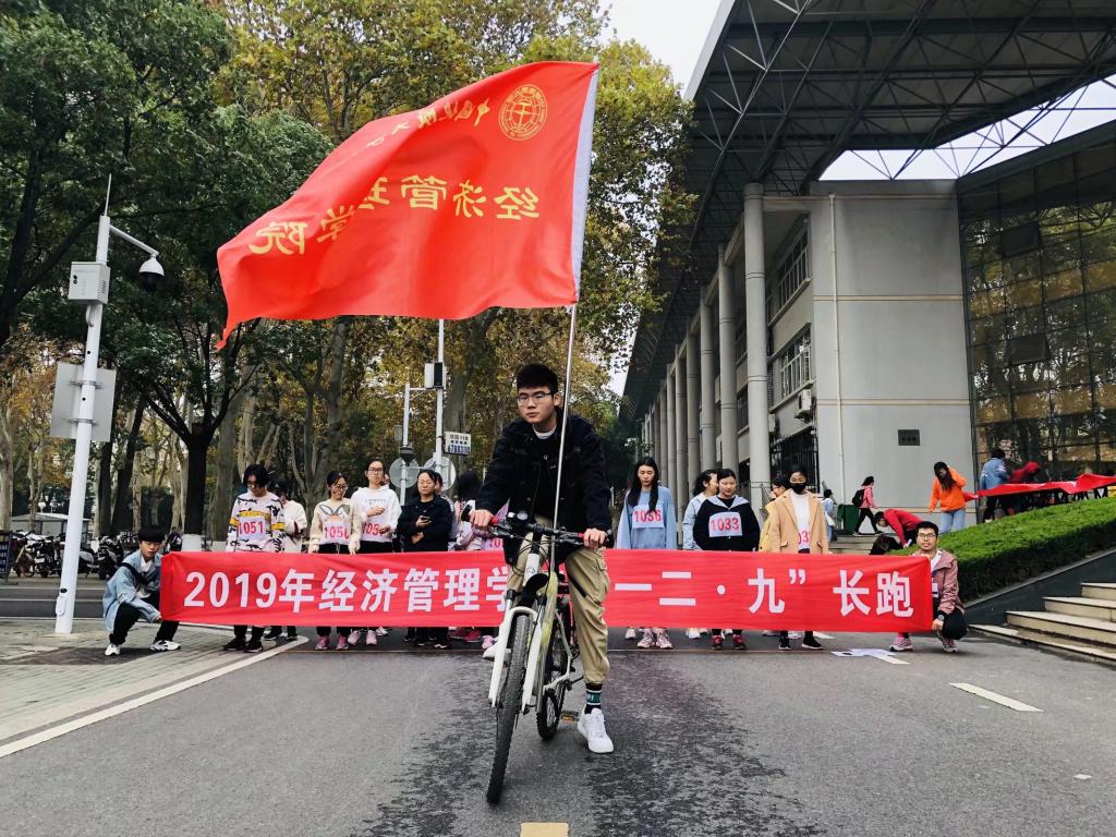 上午9时整,男子组出发,带队旗手为2018级旅游管理专业孙辉;9时05分,女子组出发,带队旗手为2019级管理科学与工程大类四班黄志豪。