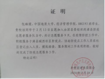 设立党支部战“疫”先锋榜。对于在疫情中表现突出的党员和积极分子,支部及时给予表扬,设立战“疫”先锋榜,号召全体党员和积极分子向他们学习。为武汉疫区困难老人发放口罩的陈炳轩、帮助搬运蔬菜支援武汉的杨俊坡、联合同学发起湖北省中医院定向捐赠物资的罗玮佳、一家三口战斗在战疫一线无私奉献的贲雅雯和冒着严寒协助防疫人员摸底排查的包琳媛等同志,成为广大同学学习看齐的先进典型。