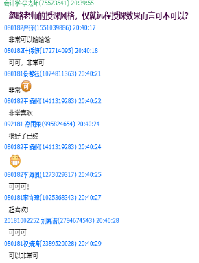 通过一段时间的探索、各个老师均找到了符合自身教学方式的授课方式李月娥老师综合利用了多种上课方式,直播与音频并行,课前录好音频以防直播的卡网问题;通过员工间的提问,沟通、讨论,提高知识吸收率,帮助同学们深入了解知识点并活学活用;课前分享抗疫中的感人事迹,推动教学过程中的教人育人并行,增强同学们的民族自豪感与社会责任感。马莉丽老师通过利用腾讯会议,做好员工情绪的安抚工作,使员工在尽可能短的时间内接受并熟悉网上教学方式;注重课程互动,课堂上随时使用麦克风功能对员工进行提问;引导员工思考疫情后可能有的政策调整,帮助员工从宏观方面看待社会问题及政府政策。王琳老师将超星学习通平台和腾讯会议相结合,利用学习通平台进行课程知识的重难点梳理,结合腾讯会议进行直播,并且关心上课期间同学们的反馈,利用问卷调查主动了解同学们的上课感受和诉求,及时的进行反馈和调整。李利华老师录制“课前说明”导学音频,用以介绍本门课程及教材,学习方法等,将所有随堂音频和课件,习题电子册等资料亦皆上传至教学群,充分考虑到职工的时差问题、患病员工上课时间问题。王然老师采用的腾讯会议结合QQ群的方式上课,课堂上以随机提问、员工组队互动问答的形式,引导员工对所学进行深入思考;增加随堂作业次数,引导员工温习课堂内容又兼顾考勤的功能;作业批改完成后及时通知,以便员工及时改正并进行必要交流。