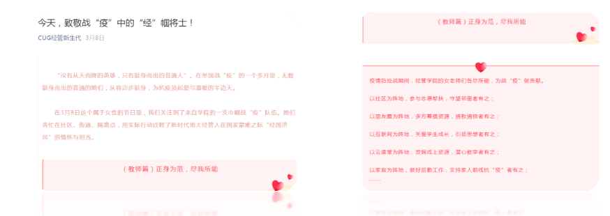 2020年“三八”国际妇女节,分工会与学工组携手联合发布巾帼战“疫”推文