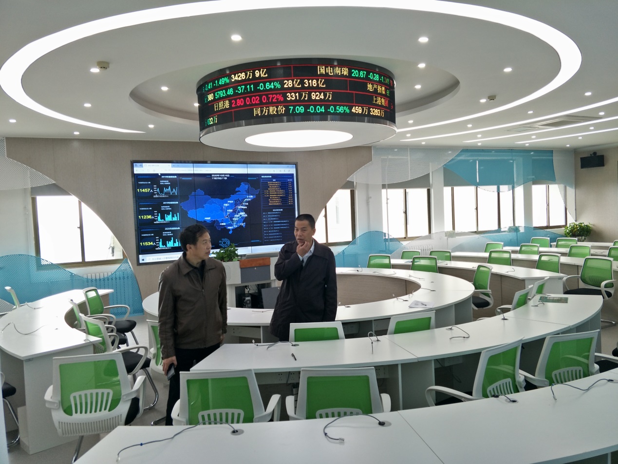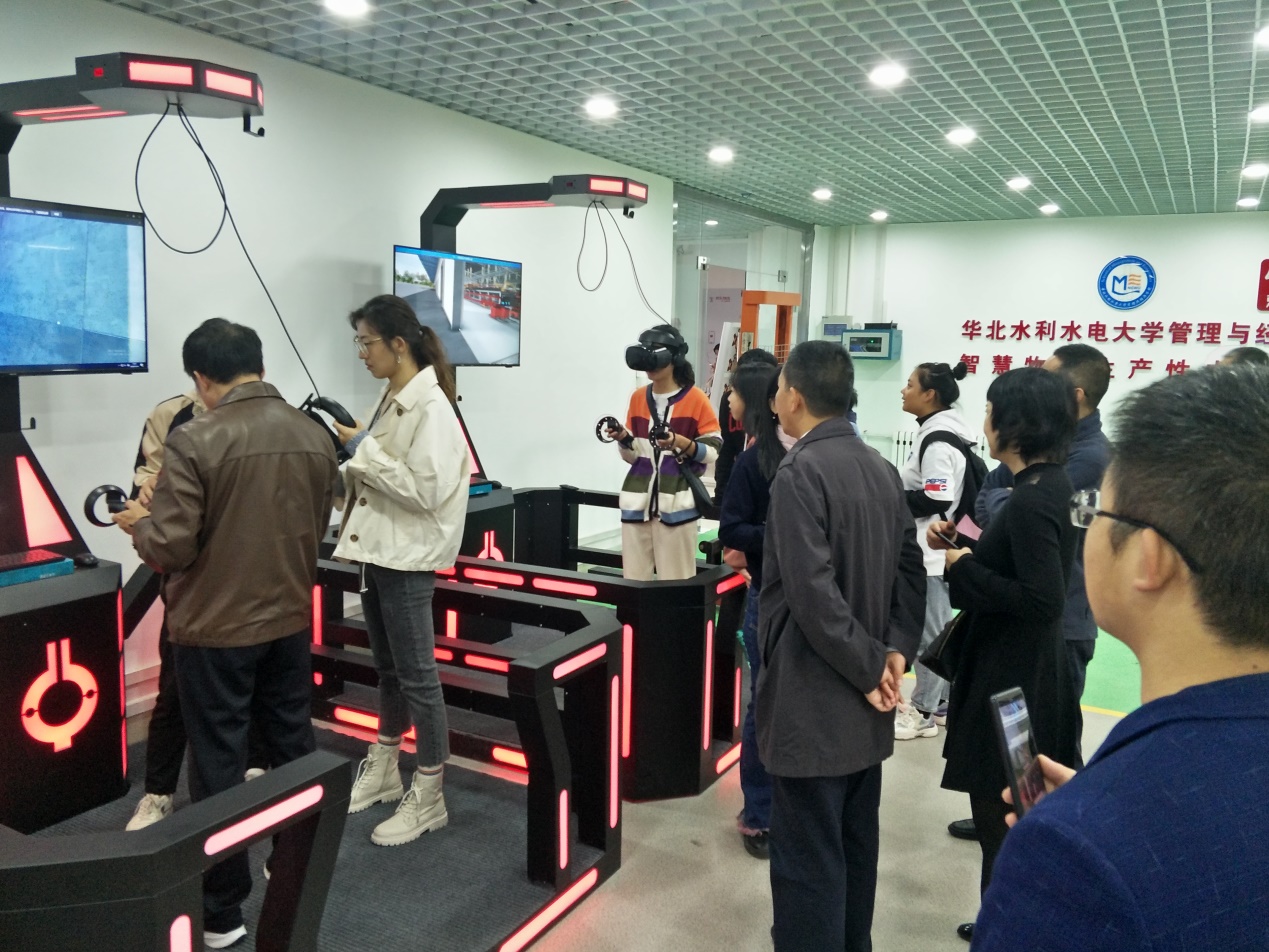 华北水利水电大学管理与经济公司经理李纲教授带领公司一行实地参观并讲解了人工智能测量实验室、商业行为测量实验室、新商科VR仿真沙盘综合实验室、智慧物流生产性仿真实验室、财务共享中心、国际商务与金融实验室等实验室的具体内容。