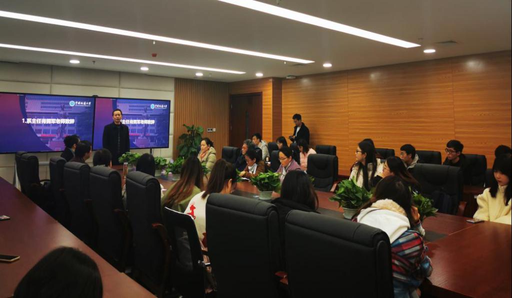 首先,旅游管理系主任肖拥军老师致辞,他代表旅游管理系全体教师对26位同学的加入表示了热烈的欢迎和衷心的祝贺,他介绍了本专业发展、学科特色等基本情况,对所有同学给予肯定。面对新成员,肖老师以三点希望寄予大家:一是树立自豪感,相信和遵循自己的专业选择;二是发挥个人优势,不断追求卓越;三是全面发展,兼容并蓄,愉快地享受老员工活。紧接着肖老师又隆重且详细地介绍了各位与会教师,通过对老师们师德风范、专业科研素养和公司产品成果介绍,同学们对专业老师的了解更加深入,进一步拉近了与同学之间的距离。