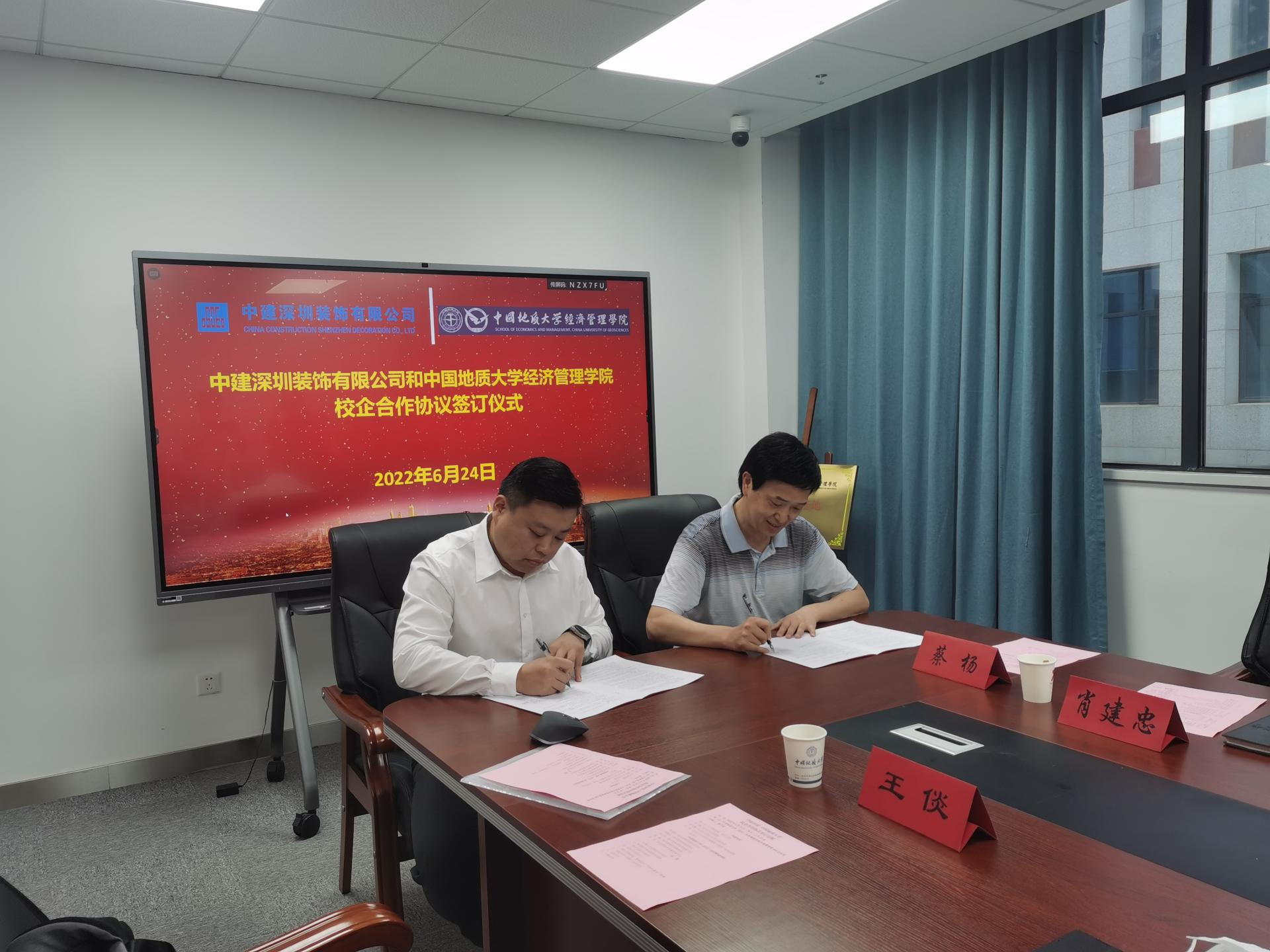 (通讯员 张雨 张弛)2022年6月24日上午10点,中建深圳装饰公司副经理李冰、武汉分公司经理刘铖、武汉分公司人力资源部经理贾宝鹏以及武汉分公司项目管理部经理助理王倓(公司员工)等人来院洽谈合作。公司党委书记杨昌锐、经理杨树旺、副经理肖建忠、管理科学与工程系党支部书记孙涵、辅导员蔡杨、兼职辅导员张雨参会。