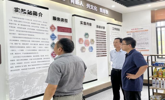 新时代文明实践站是农村基层宣传思想文化活动和精神文明建设中心,经鹰实践队在公司党委副书记李少杰老师和团委副书记努尔夏提老师的带领下,7月5日初次走访林家咀村的文明实践站。实践站的建设由镇党委领导,连接起优秀传统文化与新时代文明,着重发挥精神宣传作用,让新时代文明“活起来”。实践站从党建、历史、孝德文化、法治等方面着手,突出乡镇特色“孝”文化,深挖其中优秀本质,与新时代文明相结合,充分发挥“德治”作用。在参观林家咀村新时代文明实践站的过程中,实践队成员王子钰有感而发:“我们可以感受到这些宣传内容能让新时代文化更加生动形象地站在大家面前,依托这样一个宣传窗口,将新时代政策具体化,帮助大家了解政策从而自发关注政策,提高国家意识。”