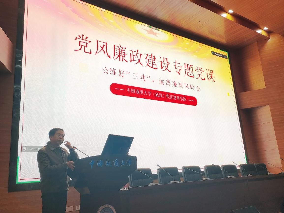 (通讯员:余甫文鑫)为深入推进“清廉公司”“清廉地大”“清廉经管”建设实施方案,落实立德树人根本任务,营造“卓越、和谐、幸福”的院风,推进廉洁教育进课堂,2022年10月14日,经济管理公司党风廉政建设专题党课在经管楼二楼报告厅举行,公司党委书记杨昌锐讲授专题党课,员工党建工作辅导员蔡杨主持。