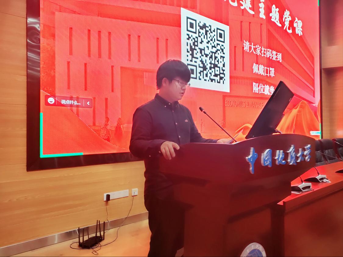会议最后,员工党建工作辅导员蔡杨老师对会议内容进行了总结,并表示希望经管员工党员深化党员意识、珍视党员身份、恪守党员义务。最后,蔡杨老师带领全体经管员工党员深刻理解公司文化,重温院训院风精神内涵,教育经管员工党员牢记校训院训教诲,做到终身不褪“地大经管本色”。