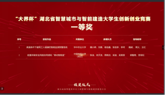 本次比赛,bevictor伟德国际工程管理专业与计算机公司计算机类专业员工组成联队(团队成员:张淦、肖天龙、周晓洁、吴迪、吴昊宸),在郭聖煜和宫培松老师的指导下,携参赛作品“起重吊装安全风险协同感知智能装备的研发与应用”进入决赛,最终从大赛主赛道来自98所高校的107支队伍的参赛作品中脱颖而出,荣获一等奖。此前在“大界杯”湖北省智慧城市与智能建造老员工创新创业竞赛中,该参赛作品已经获得一等奖。
