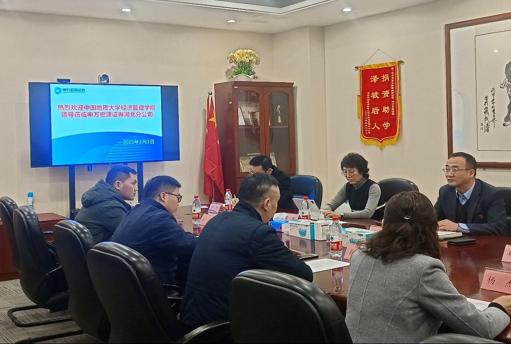 赵杰俊代表申万宏源证券湖北分公司对公司到访表示欢迎。他详细介绍了公司发展历程、组织架构、经营状况、产业领域等情况。他表示公司对经济、法律、会计人才的需求较大,希望开展员工实习实践、院企项目合作、投资孵化与研究服务等多层次的校企合作。