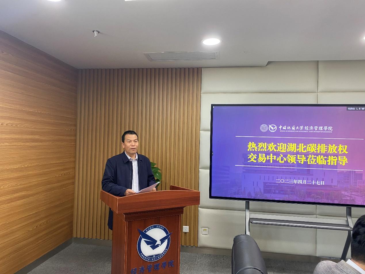基地负责人杨之骄介绍了基地的筹建情况和愿景。杨之骄表示,基地的愿景是成为国内领先的碳中和人才培养与就业综合服务平台,成为基地共建方地大经管公司与湖北碳交中心手中的一张亮丽的绿色名片,并力争两至三年内建成年培养规模过千人次,年经济效益过千万级的,具备较高行业美誉度与社会影响力的专业碳人才基地。
