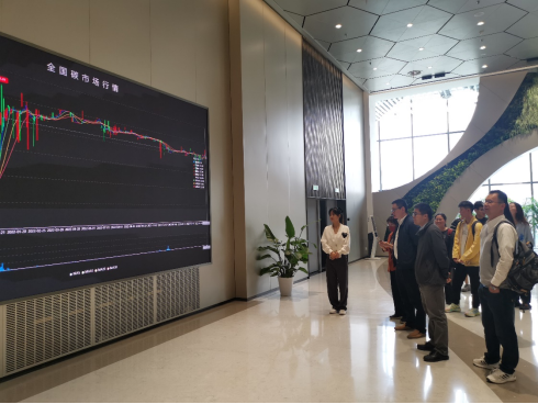 会后,师生赴碳汇大厦参观,2022届经济学员工白瑾萱带领师生了解湖北“双碳”产业的发展现状及入驻碳汇大厦的企业名录。