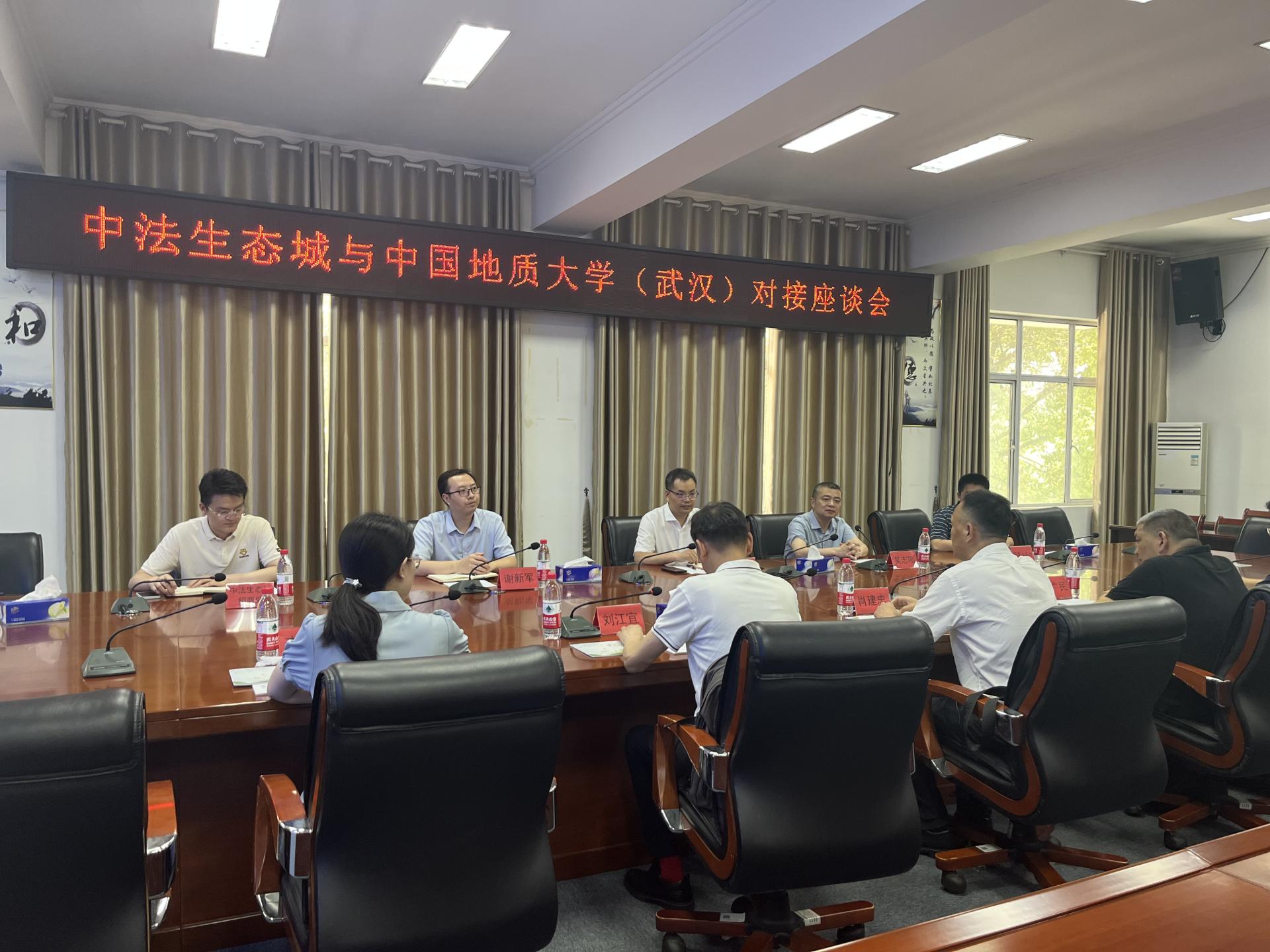 参观结束后,师生来到中法武汉生态城管委会,与蔡甸区委组织部,管委会人才办、招商处等相关领导座谈。公司优秀员工,蔡甸区委常委、组织部部长王呈华参与交流。双方围绕人才培养与输送、产学研融合发展等共同关心的话题进行深入交流,签署了校地战略合作协议。公司为中法武汉生态示范城管委会授牌“产学研实践基地”。