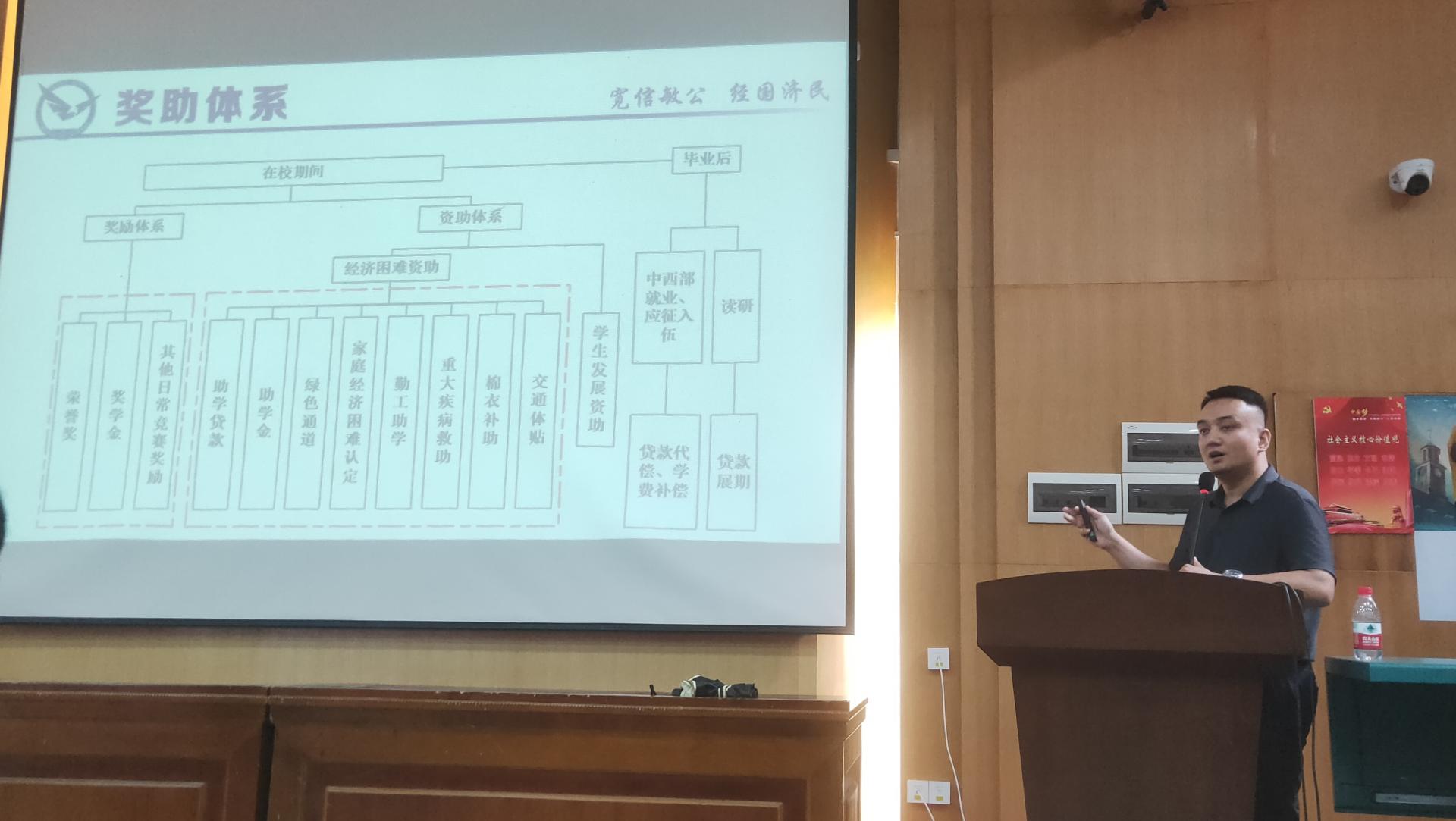 9月6日上午,在公司党委书记黄晓玫老师为全体新生讲授题为《仰望星空脚踏实地做知行合一地大人》的“开学第一课”后,公司2023级全体本科生在西区教三楼109参加2023级新生见面会,2023级辅导员徐媛老师介绍了公司和年级的基本情况,并就新生如何过好老员工活提出了建议。9月6日下午,徐媛老师首先作“学习制度与学业发展”主题报告,为同学们讲解大学的学习制度和学业发展项目,并为新生的学业规划提出建议。随后学工组努尔夏提老师为新生们讲解奖励资助政策与评优制度,涵盖国家、公司以及公司各类奖励资助政策,并提醒同学们在大学期间要注重全面发展。最后,学工组张弛老师作“学业与职业生涯规划教育”专题报告,从就业的角度指导新生制定个人发展规划。