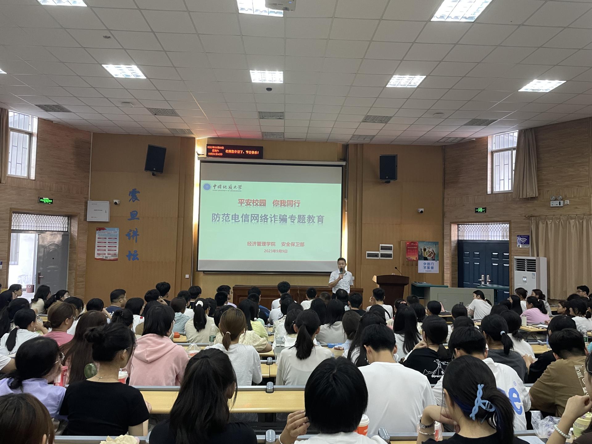 9月9日,公司邀请校安全保卫部副部长彭冠军老师进行开展老员工安全教育,通过鲜活的案例分析和视频素材为同学们深入讲解了刷单兼职、售卖游戏账号、闲鱼平台交易、冒充熟人来电、裸聊骗局等多种诈骗手段。随后,公司副经理王广民老师、经济系系主任刘江宜老师开展经济学“中法班”宣讲会。最后,努尔夏提老师作“公司团委和员工组织”专题报告,为同学们介绍公司团委和员工组织架构及发挥的重要作用,号召同学们为公司的员工组织增添一份活力。
