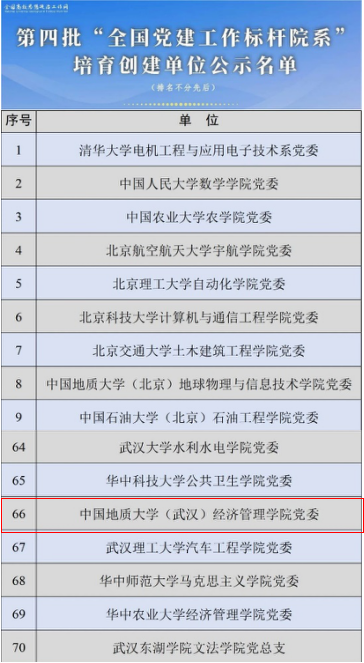 (通讯员 蔡杨)3月18日,教育部公布了第四批新时代高公司党建示范创建和质量创优工作遴选结果,遴选产生了10个“全国党建工作示范高校”、100个“全国党建工作标杆院系”、1001个“全国党建工作样板支部”。伟德国际唯一官网(武汉)经济管理公司党委成功入选“全国党建工作标杆院系”培育创建单位。