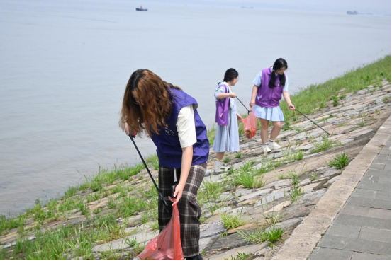 宣讲结束后,志愿者们迅速投入到净滩行动中。他们分成若干组小组,分发垃圾袋、手套等工具,沿长江边捡拾垃圾,包括塑料瓶、纸张、烟蒂等。在净滩活动进行的同时,还设立了临时垃圾回收点,及时处理捡拾的垃圾。每个人都积极参与,用实际行动守护着长江的清洁与美丽。