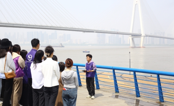 首先,楚江拾遗实践团负责人田林站在万里长江边,介绍了团队关于非物质文化遗产活态传承赋能长江国家文化公园建设路径的研究成果,以及他们如何通过“访江脉,传文脉,续文脉,载文脉”四位一体模式,用一项项丰富成果践行着习近平总书记“长江嘱托”的故事。团队打造“行走式”长江非遗课堂,推动科普宣讲进社区进校园进景区进支部,发起“美丽长江青春行动”志愿服务品牌,相关研究报告获湖北省国家文化公园建设工作领导小组采纳,实践过程及成果获湖北省文化和旅游厅回函肯定,同时连续三年获评湖北省“三下乡”优秀实践团队,还获得“挑战杯”红色专项国家二等奖。他们让聆听的员工真切感受到“烟笼寒水月笼沙,不止灵秀与樱花!”