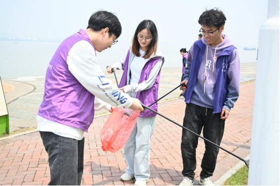 上午10点,师生抵达江滩,志愿者们穿上整齐划一的“紫马甲”,公司党委副书记李纪亮进行动员讲话。他指出,保护长江生态环境,让长江恢复生机是我们共同的责任,我们不仅要读好“有字之书”,还要掌握“无字之书”,公司开展本次宣讲实践活动,包括净滩服务、公益宣讲和师生午餐会等内容,坚持“四带领航”(党带团、师带生、研带本、老带新),一方面提供平台供同学们在社会实践场域中深刻领会党的创新理论和学科专业科研成果如何交融,另一方面是通过志愿服务的方式让同学们真切感受和维护好我们的美好生态家园,社会实践是员工成长发展的重要载体,希望同学们以本次活动为契机加强沟通协作,放飞梦想、健康身心、享受生活,拥抱美丽的大自然!