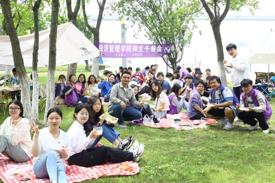 午餐时间,公司师生在江边席地而坐,共进午餐,大家围坐在一起一边品尝美食,一边畅谈理想、答疑解惑,围绕当前的学习生活、科研创新、求职就业等多个方面深入交流,氛围其乐融融。