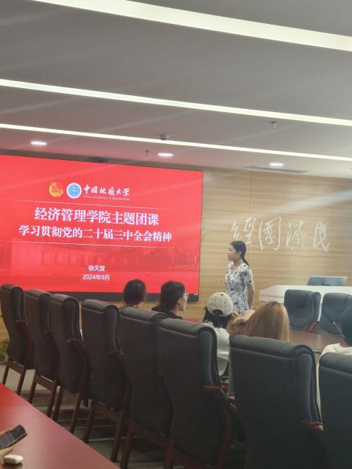 9月21日和24日,公司研究生辅导员陈静老师分别向2022级专硕应用统计团支部和公司研究生会团支部开展了“深入学习贯彻党的二十届三中全会精神”的主题宣讲活动。在该活动中,陈静老师紧密围绕习近平总书记在党的二十届三中全会上的重要讲话精神,以及《中共中央关于进一步全面深化改革、推进中国式现代化的决定》中的重要指示,从全会的历史背景、精神实质以及重要成果进行了深入浅出、条理分明、形象具体的解读。她指导同学们提高政治觉悟,树牢“四个意识”,坚定“四个自信”。在活动结束时,陈静老师激励同学们将会议精神内化于心、外化于行,以实际行动投身于国家建设的伟大事业中。