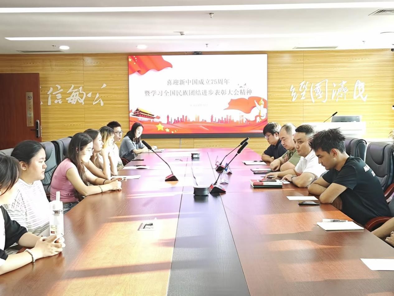 9月29日,公司组织“青年铸梦研习社”团支部和少数民族员工代表开展“喜迎新中国成立75周年暨学习全国民族团结进步表彰大会精神”主题座谈会,公司党委副书记李纪亮、团委书记努尔夏提·居勒提和辅导员蔡杨出席活动和同学们共同学习习近平总书记重要讲话精神,交流我国民族团结进步事业发展成就,畅谈对铸牢中华民族共同体意识的理解,进一步深入领会新时代党的民族理论和政策。会上,同学们积极发言分享自己的感受和心得,三位老师结合自身成长和工作经历向同学们提出成长发展建议。