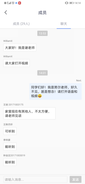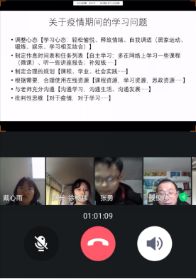 082181班学习委员田敬宇尽职尽责,就开展网上教学以来的学习情况也进行了全面细致的汇报。他说:“身为员工,我们的本职工作就是努力学习,掌握知识,回报社会。疫情当前,我们已经上了三周的网课。从一开始的手足无措到现在的熟稔积极,老师们积极引导,同学们努力配合,网课学习也渐渐步入正轨。”他介绍,本班课堂考勤总体情况良好,同学们逐渐适应网课学习,并加强和老师们的互动。