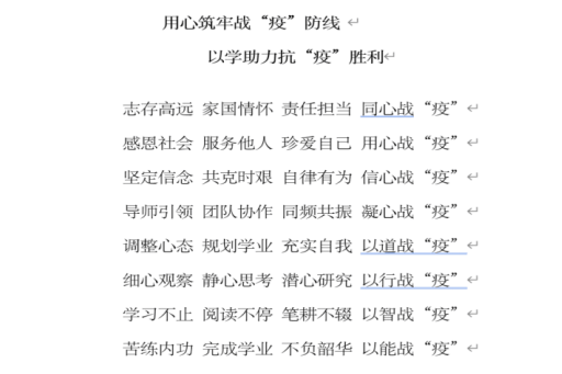 抗疫之路漫漫,取得抗疫胜利需要我们所有人的共同努力。希望疫情能够早日结束,春花烂漫时,我们能够在武汉相见,再一起在课堂上吸收成长的养分,再一起去春游、去烧烤,一起做更好的自己。