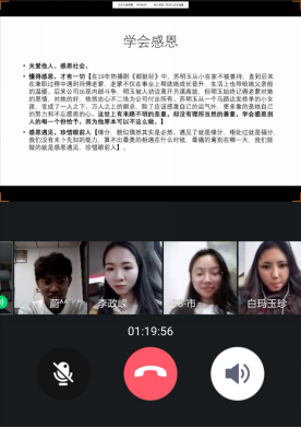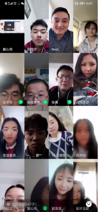 至此,市场营销专业的主题班会已至尾声。班会的最后还安排了自由问答环节。同学们从切身实际出发,提出关于开学后暑期实习是否受影响、四六级成绩的延迟对英才工程的影响、延迟开学造成学业压力如何面对等问题,老师们予以耐心解答,也给同学们吃了口“定心丸”。班会让同学们都表现出了极大的热情,虽然有些受到网络限制或是羞涩拘谨的同学没有开启摄像头,但也积极参与讨论和互动。