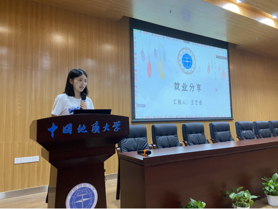 王艺瑾同学结合碧桂园的求职经历分享了作为女生的求职经验和心路历程,她展示了工程管理专业上一届毕业生的就业去向统计表,并特别强调投简历、面试时一定不要害怕失败,要保持自信。成功考取江西宜春发改委公务员岗位的廖璇同学和成功申请到美国Northeastern University offer的杨嘉怡同学分别分享了考公务员和出国留学的经验,为在校生的职业规划提供更多的借鉴经验。