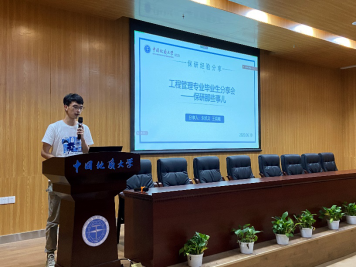 (通讯员:赵彦潇 柯小玲)6月10日下午,由管理科学与工程系工程管理专业举办的“厚积薄发,筑梦未来”优秀毕业生经验分享会在科七楼一楼报告厅顺利召开。本次会议由柯小玲老师主持,李少杰书记、朱镇老师、张先锋老师、徐媛老师,以及18、19级工程管理专业员工参加本次分享会。会议邀请朱凯文、王晨曦、孟正豪、王瀚樟、薛龙飞、王艺瑾、廖璇、杨嘉怡等八名2021届工程管理专业的优秀毕业生就保研、考研、考公、就业和出国进行经验分享。