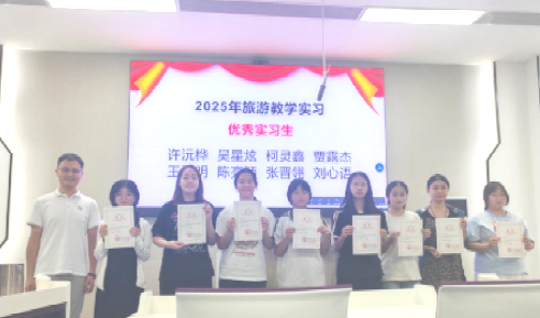 在第二阶段的实习心得分享环节,大三员工代表刘心语、吴星炫、张晋翎、贾露杰和宋艺佳依次上台,结合自身实习经历,从多个角度汇报了他们的收获与思考。一段段真实的实习经历,一张张充满温度的照片,打动了在场的师生,也展现出了旅游专业学子扎实成长、昂扬向上的精神风貌。