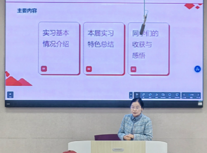 活动伊始,胡怀敏老师首先介绍了今年教学实习的成效与亮点。她通过详实的数据和案例,系统展示了金贸系今年实习基本情况与员工在实习实践中的成长收获,并重点分享了此次教学实习的改革特色。